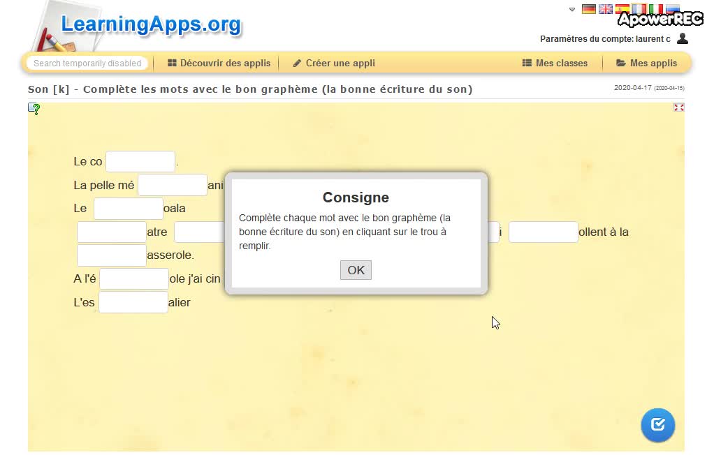Explication 5 Learning App : complète les mots avec le bon graphème